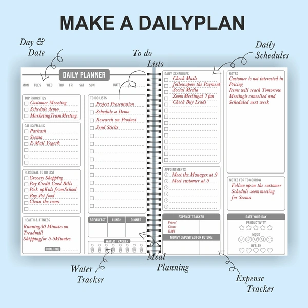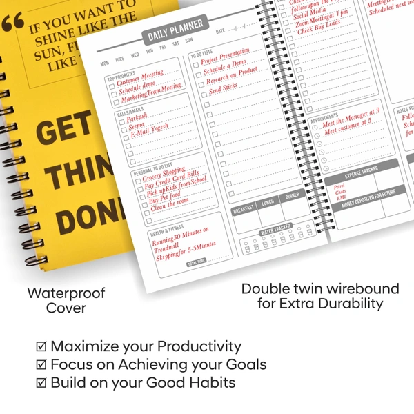 Thinkcraft Daily Planner Undated, Schedule Your Day, Manage to-do List, Goals Tracker, Wellness Tracker