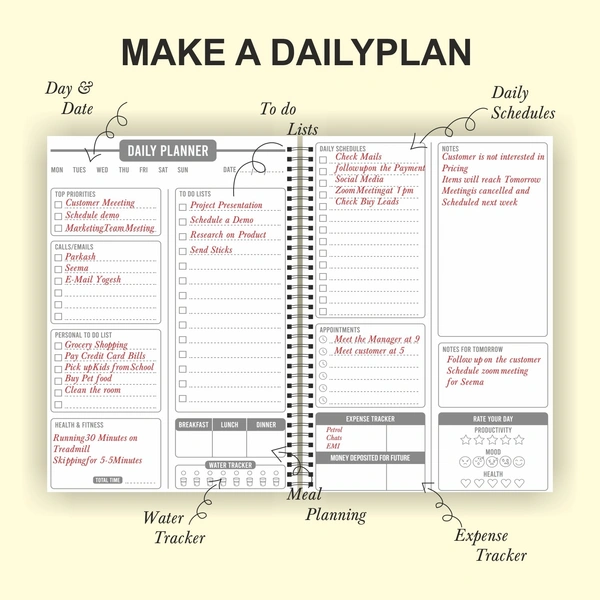 Thinkcrafts Daily Planner Undated, Schedule Your Day, Manage to-do List, Goals Tracker, Wellness Tracker